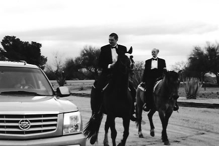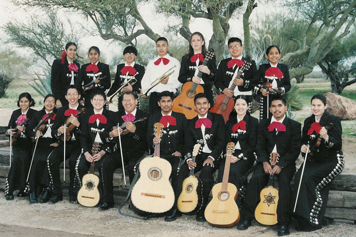 Six tuxedo-clad ACSO Scholarship Recipients greeted guests attending ACSO’s evening fundraiser festivities, Cowboy Gala 2003, on horseback and led the vehicles to their respective parking spaces. As guests exited their cars and began to approach the Palo Verde Conference Center where the 5:00 Cocktail Hour would be held, they were drawn by the festive strains of Mariachi Alma del Sol - a Mariachi ensemble made up of nineteen wonderful children ranging in age from 10 to 17 - courtesy of Rosie's House.