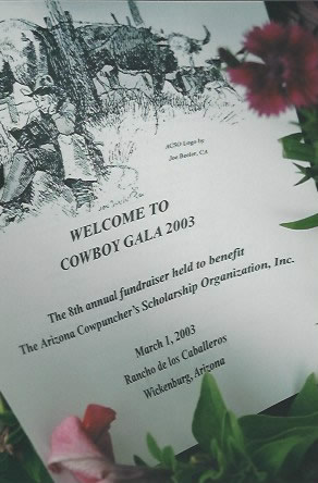 Cowboy Gala, the single fundraiser held to benefit ACSO evolved over time. The first event raised just enough money to fund seven (7) one thousand dollar scholarships for the 1995-1996 school years. Each year after, there was one single day of fundraisers held to generate the funds to continue granting scholarships to young people of the Arizona ranching community: The One Eyed Open Golf Tournament and Cowboy Gala. The 2002 events had been hugely successful, setting records in every way, including attendance and net proceeds. However, within that year another record was set when the Board of Directors approved more in scholarship awards than the fundraisers had netted. It became apparent, that beginning with Cowboy Gala 2003, the annual events would have to generate more monies in order to maintain the claim they had been so fortunate to make throughout the years - that of never having to turn a qualified applicant away.