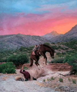 Bill felt extremely honored that many in the Arizona ranching community invited him to gather research for his artwork by allowing him to photograph while riding, and at times, working right alongside those who live the life he loved and respected; during which he developed cherished friendships throughout the years. Those times and the time he spent in his studio creating the resulting artwork, became his world, and helped him build a 40+ year career as a professional artist and become a member of the prestigious Cowboy Artists of America.